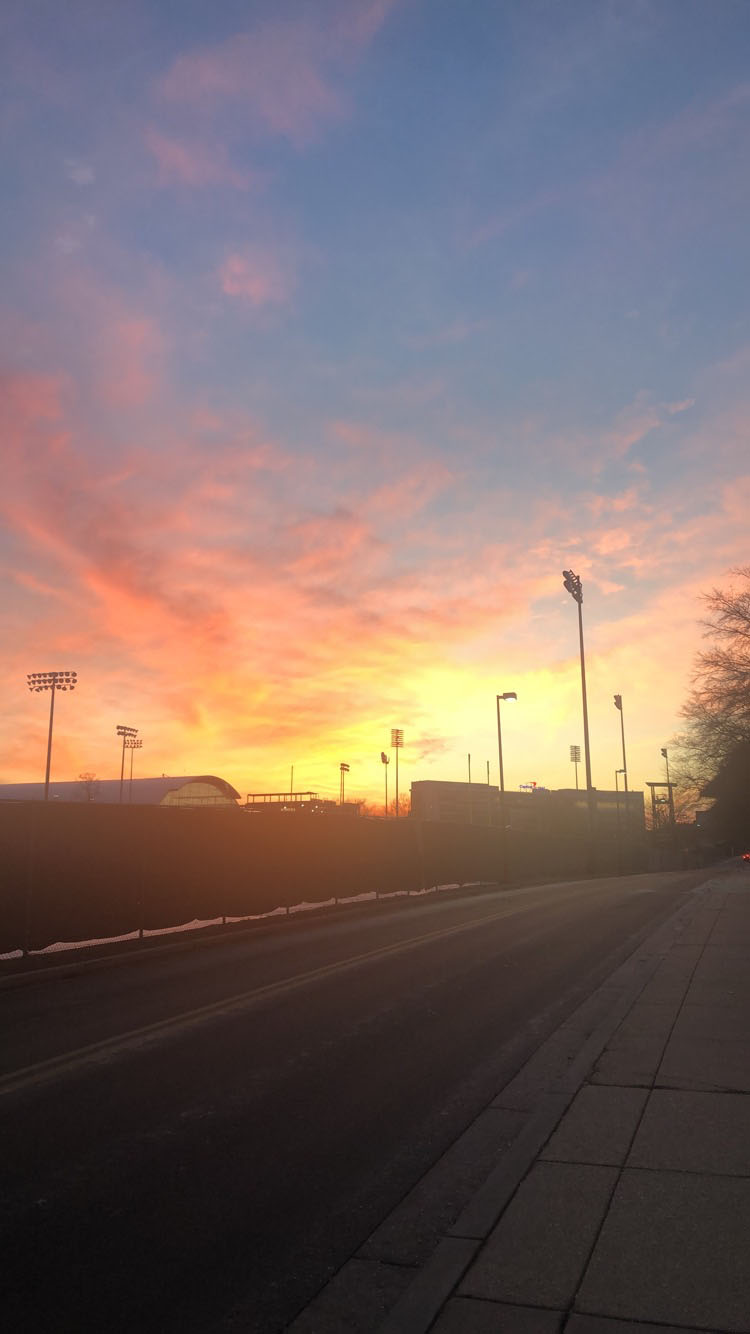 Walking over a bridge at sunrise on 9/18 in College Park, MD.